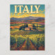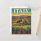 Jornada ao coração do campo italiano com este cartão postal estilo vintage. A obra de arte apresenta uma paisagem clássica da Toscana, com uma encantadora villa aninhada entre colinas onduladas e fileiras intermináveis de videiras. Esta ilustração estilizada evoca o espírito pacífico e rústico de um retiro no país do vinho, tornando-o um souvenir perfeito, um bilhete único para um amigo ou uma bela peça de arte retrô para sua casa.