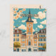 Este cartão-postal viagem, em estilo de ilustração digital, é inspirado pela arquitetura das cidades suíças.