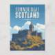 Capture o charme de Edimburgo, Escócia com este delicioso cartão-postal antigo. Este design de viagem retro vetor apresenta os principais pontos turísticos da cidade, tornando-o uma adição perfeita para a sua coleção de cartões-postais ou um presente único para qualquer entusiasta de viagens.