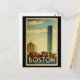 Design de Boston Massachusetts, no estilo Viagens vintage, mostrando o Porto de Boston com vista para a linha do horizonte.