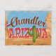 Arte de poster neoviagens vintage de Arizona Chandler em desenho retro com deserto, cacto e rocha vermelha.