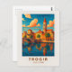 Capturar o charme do Adriático com este cartão postal, ao estilo vintage, com a cidade histórica de Trogir, Croácia. Projetado com cores retrógradas e uma estética nostálgica do poster de viagens, este trabalho de arte destaca a icônica arquitetura medieval da cidade, a ponte de pedra cênica e as águas calmas turquesas. Perfeito para viajantes, colecionadores e amantes da arte safra, este cartão postal traz um pedaço da beleza costeira da Croácia em suas mãos.