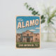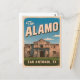 Volte no tempo para o lendário Álamo com este cartão-postal inspirado no viagem. Infundido com vibrações nostálgicas e charme vintage, este design representa a fortaleza icônica em uma estética retrorreflectora que lembra posteres de viagens clássicos de ontem.