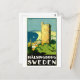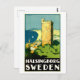 Este postal é uma reprodução de uma poster de viagens vintage para Halsingborg na Suecia.