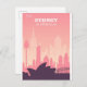 Qualquer um adoraria receber este cartão-postal cor-de-rosa poster com uma ilustração retrógrada do horizonte de Sydney, Austrália, incluindo a Ópera!
