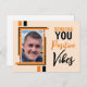 Enviando-lhe vibrações positivas, cartão postal de encorajamento. Substitua a foto por uma de suas. Envie isso a alguém / um amigo, que talvez precise saber que você está pensando neles. Laranja e preto.
