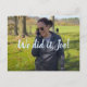 Vice-Presidente Eleito Kamala Harris: Fizemos, Joe! personalizado cartão postal. Comemore o momento em que um jubilante Kamala Harris liga para Joe Biden ao telefone para dizer que eles ganharam a Eleição Presidencial de 2020, dizendo, "Nós fizemos isso, Joe!" Este cartão-postal personalizável mostra uma fotografia de Kamala Harris do lado de fora ao telefone chamando Joe Biden no momento histórico em que a primeira mulher e primeira mulher a cores diz ao Presidente Eleito que eles ganharam a eleição. Personalize-o adicionando ou alterando texto ou imagens.