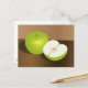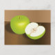 Cartão de posto numa ilustração digital de uma maçã e meia verdes sobre um fundo castanho de café texturizado