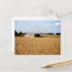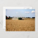 cartão postal com fotografia de um campo e uma grande máquina a trabalhar nele. Personalizável.