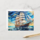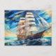 Cartão Postal Vidro Manchado Barco à Vela Antigo no Oceano