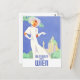 Cartaz de Viena. A senhora de branco se diverte à vista na Rua.