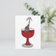 Elefante hilário e fofo sentado num copo de vinho tinto e pulverizando uma fonte de vinho. Boa ideia. Também é possível adicionar texto personalizado e alterar a cor do plano de fundo ao solicitar.