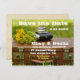 Cartão postal vintage de aviso de data de casamento, com verso envelhecido e desgastado