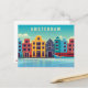Classic Vintage Amsterdam Países Baixos Waterfront & Boat Postcard. Esta impressão apresenta uma visão ilustrada de uma paisagem urbana de Amsterdã a partir da água. Design notável, incrivelmente perfeito.