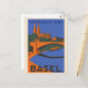 Qualquer um adoraria receber este viagem suíço vintage com um cartão postal com uma ilustração retrógrada da cidade de Basileia, Suiça!