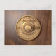 Uma campainha típica de latão brilhante com a palavra pressionada em uma superfície de madeira