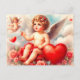 Cartão Postal Vintage Cherub Angel com Rosas Rosa