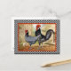Ilustração vítrea de uma galinha e galinha no quintal de galinha bicando para comida.