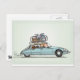 Desenho de cor macia de um Citroën DS com equipamento de campismo e bicicletas