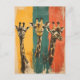 Diese Vintage Drei Giraffenköpfe auf gelb, grün und rotem Vintage-Hintergrund im afrikanischen Stil vereint die majestätische Schönheit der Giraffen mit lebendigen Farben und kulturellen Akzenten. Die kraftvollen Köpfe der Giraffen heben sich vor einem Hintergrund in den typischen afrikanischen Farben Gelb, Grün und Rot ab, die die afrikanische Kultur und Natur widerspiegeln. Der afrikanische Einfluss im Design sorgt für eine exotische und künstlerische Note, die das Flair der afrikanischen Savanne einfängt. Diese Postkarte ist perfekt für Naturliebhaber, Sammler von afrikanischer Kunst oder alle, die ein Stück afrikanisches Erbe in ihr Zuhause bringen möchten. Ein einzigartiges Souvenir oder Geschenk, das die wilde Schönheit Afrikas feiert.