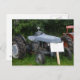 Uma fotografia de perto de um trator velho e azul-céu, com uma placa de venda feita à mão contra a frente, com uma sugestão de um trator vermelho ao lado. Excelente para amantes da fazenda de vintage.