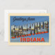 Um extraordinário pedaço de arte retró-viagem, este cartão postal antigo mostra o clássico design de letras grandes "Saudações de" para Evansville, Indiana. Esta placa coletável é renderizada em uma paleta vibrante de cor azul, vermelha e branca profundas, dando a ela um apelo de Americana eterno. Cada letra de bloco de "EVANSVILLE" mostra um marco e uma vista cênica diferentes em Evansville, incluindo: A bela margem d'água do rio Ohio. Arquitetura histórica do centro e montes de igreja. Pontes proeminentes de Evansville ligando as margens dos rios. Este estilo é característico dos cartões postais Curt Teich & Co. (anotados no cartão), fazer-o um achado valioso para os colecionadores de cartões postais. É perfeito para nativos de Indiana, antigos residentes, turistas, ou qualquer pessoa que queira adicionar arte nostálgica única em sua casa ou escritório.
