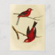 Lindos Flycatchers vermelhos ou Vermilhes ilustrados num fundo creme. Um pássaro está empoleirado e o outro parece pronto para voar. Cor vermelha brilhante e detalhes intrincados são vistos nesta pintura pelo artista e ornitólogo norte-americano John Cassin. Pintado na Era Vitoriana, 1862