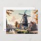 Clássico Vintage Holland Windmill. Este impressão apresenta uma visão ilustrada de uma paisagem urbana de Amsterdã e de uma moenda d'água. Design notável, incrivelmente perfeito.
