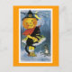 Ilustração de Vintage Halloween mostrando um jack o'Lantenr filho segurando um gato preto.