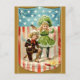Este cartão postal apresenta uma ilustração antiga de duas crianças ativando um pirata-fogo com uma bandeira dos EUA atrás delas. Aproveite seu novo cartão postal Vintage Kids Configurando um Firecracker!