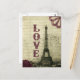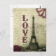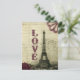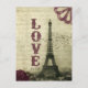 Imagem da Torre Eiffel Vintage em Paris, França. Uma velha carta de amor francesa está esmaecida no fundo.