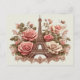 Uma design romântica com a Torre Eiffel enfeitiçada por intrincados motivos florais, rosas florescentes e cipós exuberantes, simbolizando a beleza e elegância dos jardins parisienses.