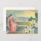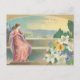 Um anjo investiga uma paisagem com lírios Páscoas. O texto diz "Que seja um felz pascoa". Esta era originalmente uma Páscoa de 1910. Cortesia da coleção de cartões de dominio público da Biblioteca Pública de Nova York.
