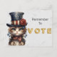 A charming, wide-eyed kitten dressed in a vintage Uncle Sam top hat adorned with stars, stripes, and a classic red rose. Soft blue florals and a patriotic ribbon frame the cat’s fluffy fur, blending Americana nostalgia with whimsical sweetness.
