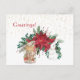 Cartão Postal Vintage Red Poinsettia Teacups Rabbit Natal