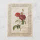 Cartão postal retrorreflector com uma ilustração botânica antiga de rosas vermelhas com um quadro embelezado antigo estilo francês e textura de papel antiga amassada. A imagem faz parte de uma série e está disponível também como impressão de formato grande.