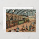 Vintage, comboio a vapor e estação ferroviária, com um comboio a vapor e carruagems, plataforma de estação, passageiros de férias com bagagem, porteiro ferroviário e um belo exemplo de um edifício de estação ferroviária vitoriano