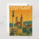Linda e na moda Stuttgart Alemanha vintage trabalho de arte num postal mostrando a incrível arquitetura com marcos como o castelo ou torre de tv e paisagem urbana da cidade de Baden Württemberg. Excelente souvenir e ideia de presente.