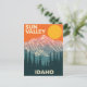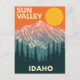 Um poster de viagens vibrante, ao estilo de vintage para Sun Valley, Idaho. A design apresenta um pico majestoso, coberto de neve contra um céu quente e laranja com um sol grande. No primeiro plano, uma floresta densa de árvores verdes e verdes é representada em tons legal estilizados. Esta ilustração retrógrada captura a beleza das montanhas de Idaho e o espírito aventura ao ar livre do Vale do Sol, fazer-o perfeito para amantes do esqui, caminhada e natureza. É uma peça de arte excelente para decoração de cabana ou para qualquer um que aprecie posteres de viagens clássicos.