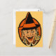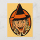 Uma ilustração adorável, vintage e minimalista do rosto de uma bruxa de Halloween. Mostra cores pretas, beges, amarelas e laranja. Muito fofo, e simples. Excelente para quem ama Halloween, arte vintage e bruxas.