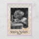 Este cartão-postal bonito tem uma fotografia de uma menina bonito, preta e branca, em roupas de festas frias. Ela tem um grande arco no cabelo. Ela está sentada em uma mesa comendo sorvete.