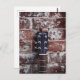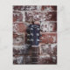 Um postal de excelente para guitarristas, músicos e amantes da música. Esta design inclui uma foto clássica de violão inclinada sobre uma parede de tijolos.