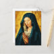 O fundo comum e escuro contrasta com a cabeça radiante da Virgem e com a morada branca que a cobre, e as mãos dela são cuidadosamente fechadas.