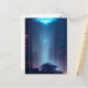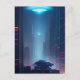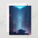 Cena futurística de ficção científica com OVNIs pairando acima de uma cidade grande. IA criou arte digital.