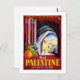 Reprodução restaurada e melhorada digitalmente de um poster de viagens da Palestina mostrando a visão de uma cidade através de um arco. Imperfeições removidas. Cores corrigidas. Imagem cortesia da Biblioteca do Congresso.