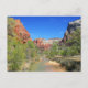 Cartão postal com uma imagem do rio Virgin que tem origem a norte e leste do Parque Nacional de Zion e flui através do sudoeste de Utah, Arizona noroeste, e eventualmente até ao lago Mead em Nevada. O rio tem cerca de 162 milhas (261 km) de comprimento e é uma fonte de vida crítica para uma impressionante variedade de ecossistemas. Foi designado o primeiro rio selvagem e cênico de Utah em 2009, durante a celebração centenária do Parque Nacional Zion. Veja o adesivo correspondente. Veja toda a coleção de Cartões-postais Zion na seção CARDS, CARTÕES POSTAIS E ESTICKERS.