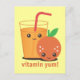 Vitamin Yum apresenta um copo de suco de laranja e uma laranja em estilo kawaii. O copo tem um canudo saindo dele. Muito fofo, divertido e delicioso!
