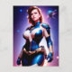 Um retrorreflector vívido e atraente, estilo pop de 50, de uma bela esquadra vermelha do espaço feminino. Pronto e disposto a proteger a galáxia contra ameaças extraterrestres sinistras. Este legal guarda espacial retrô de ficção científica se mantém confiante contra um céu estrelado vermelho e roxo vívido e colorido pronto para sua próxima aventura.