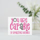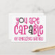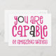 Tipografia curiosa com uma citação encorajadora Você é Capaz de Coisas Incríveis em rosa com um toque de preto sobre fundo branco. O plano de fundo pode ser alterado para uma cor diferente se você desejar.