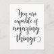 Você é capaz de coisas incríveis, uma citação motivacional excelente para lembrar. Cor totalmente personalizável.